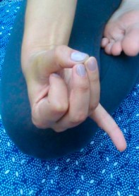 Os dedos sabidamente são terminações nervosas e de acordo com a fisiologia sutil do yoga, as terminações dos dedos médio e anelar se relacionam diretamente com as nadis, os canais de energia, conectadas ao coração, ao passo que o dedo polegar fecha o circuito de prana, intensificando o fluxo para essa região.