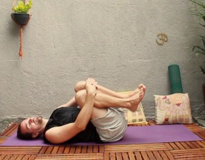 Bônus. Massageando as costas e os rins. Abrace as pernas do jeito que for possível e faça um balancinho de um lado para o outro promovendo uma massagem nas costas e nos rins pela pressão exercida pelo chão. Livremente de um lado para o outro quantas vezes quiser.
