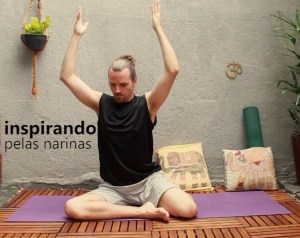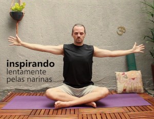 1. Conexão harmoniosa entre mente e corpo. Em uma superfície plana, se não tiver o clássico tapetinho de borracha use uma canga de praia, se o chão estiver frio, além da canga use também uma toalha seca para conter a friagem. Sente-se de forma confortável, de preferência com as pernas cruzadas e ajeite sua postura. Então, para estabelecer uma boa conexão entre mente e corpo, na inspiração eleve os braços como se estivesse se espreguiçando e na expiração desça os braços lateralmente até a altura dos ombros. Volte com os braços para cima enquanto enche os pulmões e desça os braços lateralmente enquanto esvazia. Siga entre essas duas posições permitindo que a respiração conduza todo o movimento dos braços. Faça entre 5 e 10 ciclos respiratórios associados a esse movimento.