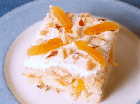 Faça camadas alternadas de biscoitos umedecidos no leite, as castanhas picadas, o creme e os damascos em calda. Finalize com biscoitos. Cubra com o chantilly e decore com os damascos e as castanhas. Sirva bem gelado.